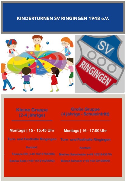 Die Gruppe für Zwei- bis Vierjährige trifft sich montags von 15:00-15:45 Uhr in der Turnhalle unter der Leitung von Saskia Saile und Tamara Ott.